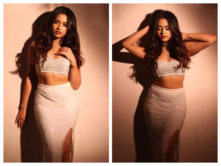 Jannat has once again increased the heartbeat of the fans by sharing her latest pictures. In these pictures, Jannat is seen wearing a white Thai high slit skirt and crop top.