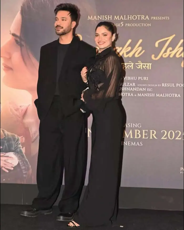 Ankita Lokhande is 40 years old. But looking at her style, hardly anyone would guess her age. But sometimes, this very style can become a disaster for her. This is exactly what happened at the screening of the Bollywood film “Gustakh Ishq.” Ankita Lokhande arrived at the event wearing a see-through shirt and holding her husband’s hand. Dozens of celebrities were present. But as soon as she arrived, the cameramen started clicking photos of the diva. Seeing Ankita’s style, even her husband was seen staring blankly at the photos.