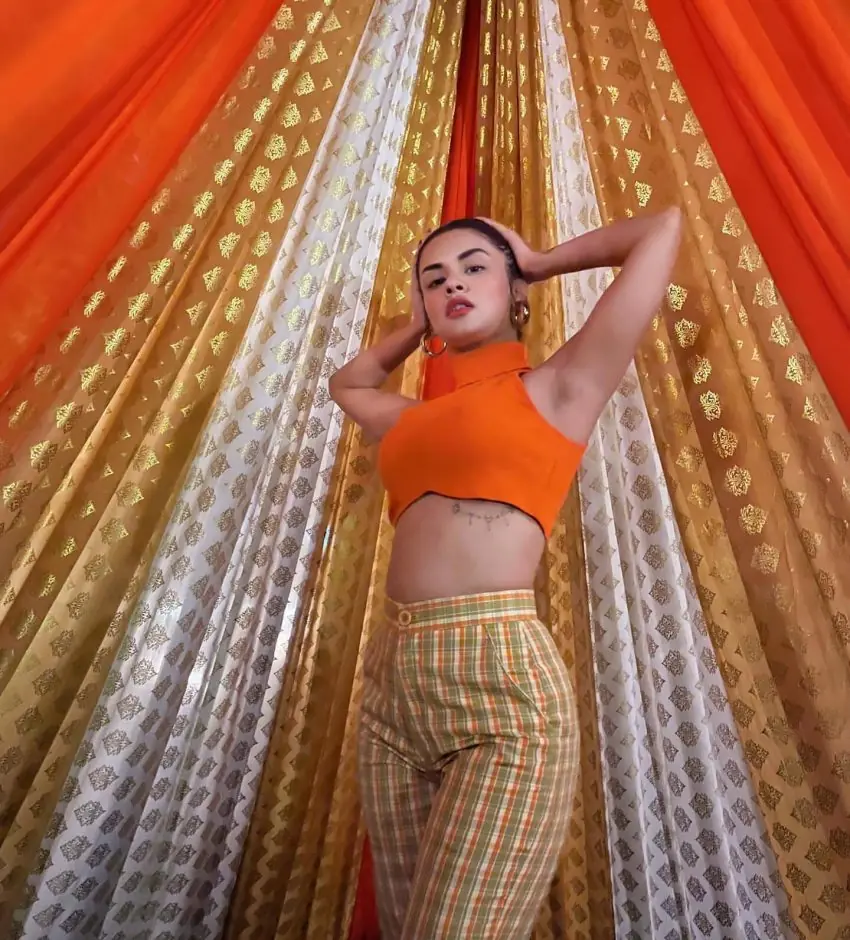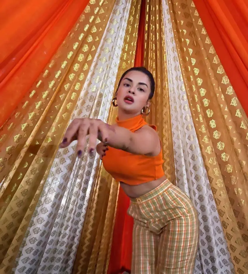 Avneet Kaur has recently shared some pictures from her Instagram account. It can be seen in these pictures that she is wearing a very hot orange colored crop top. In which her figure can be clearly seen.