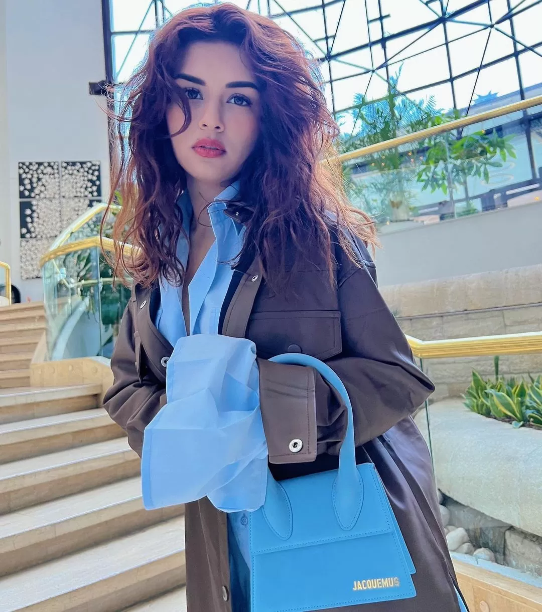 To complete her look, Avneet Kaur wore a brown jacket over the dress and opened her hair with light makeup.
