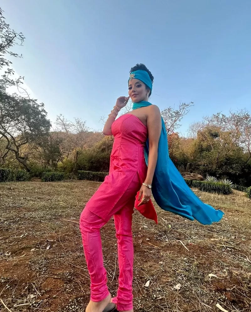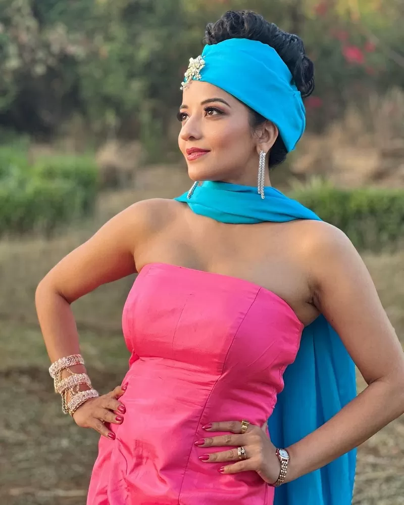 Monalisa has added a dash of glam to her bo*ld look with stylish earrings and a stylish brooch. The actress is seen living her every dream of becoming a national star.