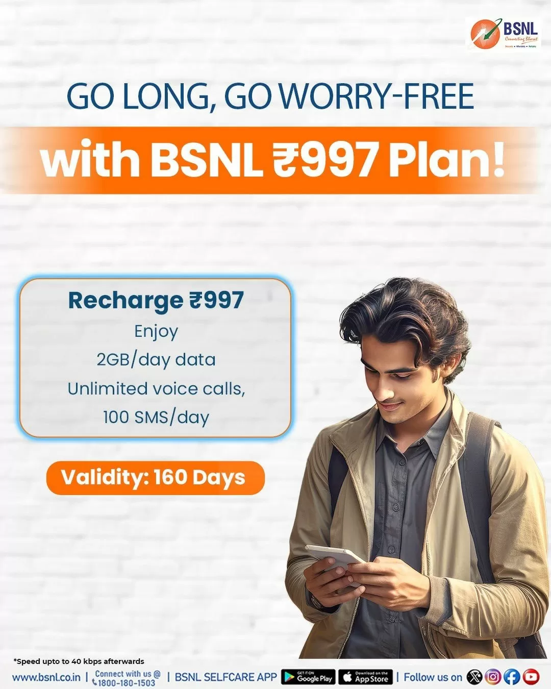 Actually, a few days ago BSNL announced this new plan by posting on its X account. This new plan of the company is Rs 997 in which you are getting a lot of benefits. Also, in this plan you are getting a long validity of 5 months i.e. 160 days.