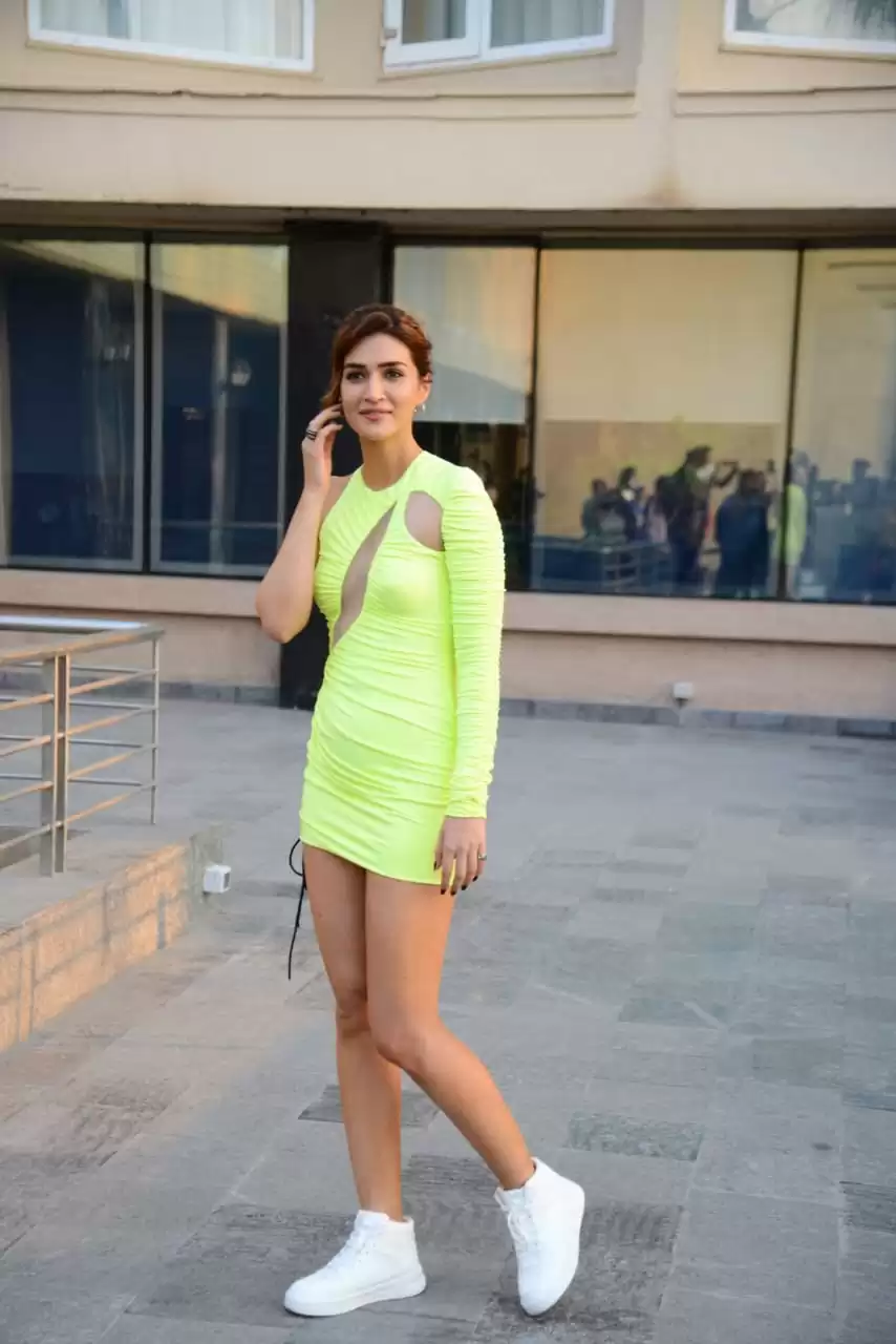 Kriti is wearing a neon color dress which is quite tight too. Her toned figure is clearly visible in Kriti’s tight dress.