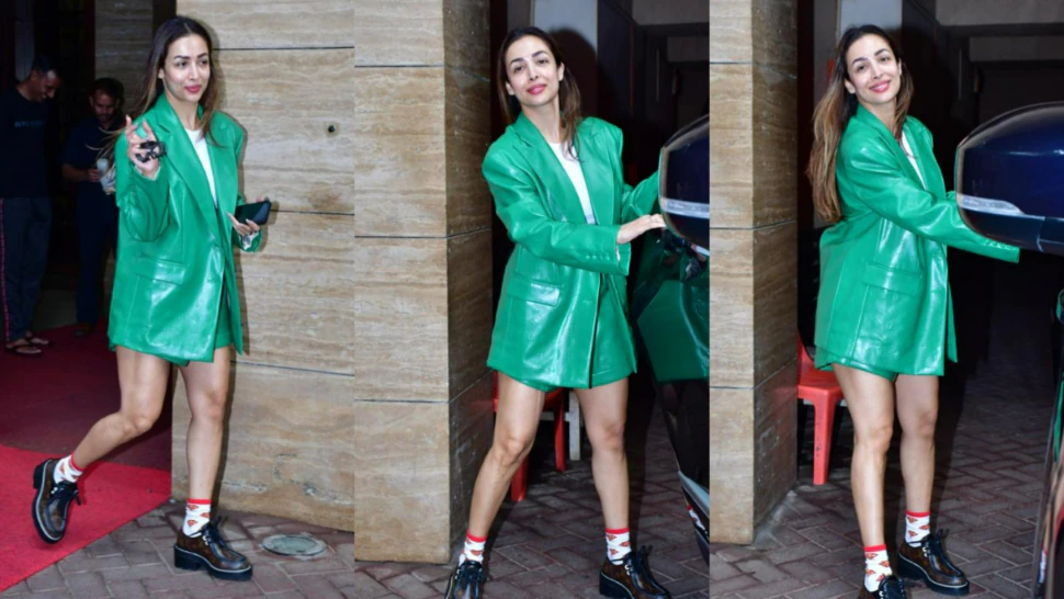 During this, seeing her swag and style, everyone just kept looking at her. In these pictures, Malaika Arora looks hot and sizzling in a shimmery green oversized blazer and shorts, under which she was wearing a white t-shirt.