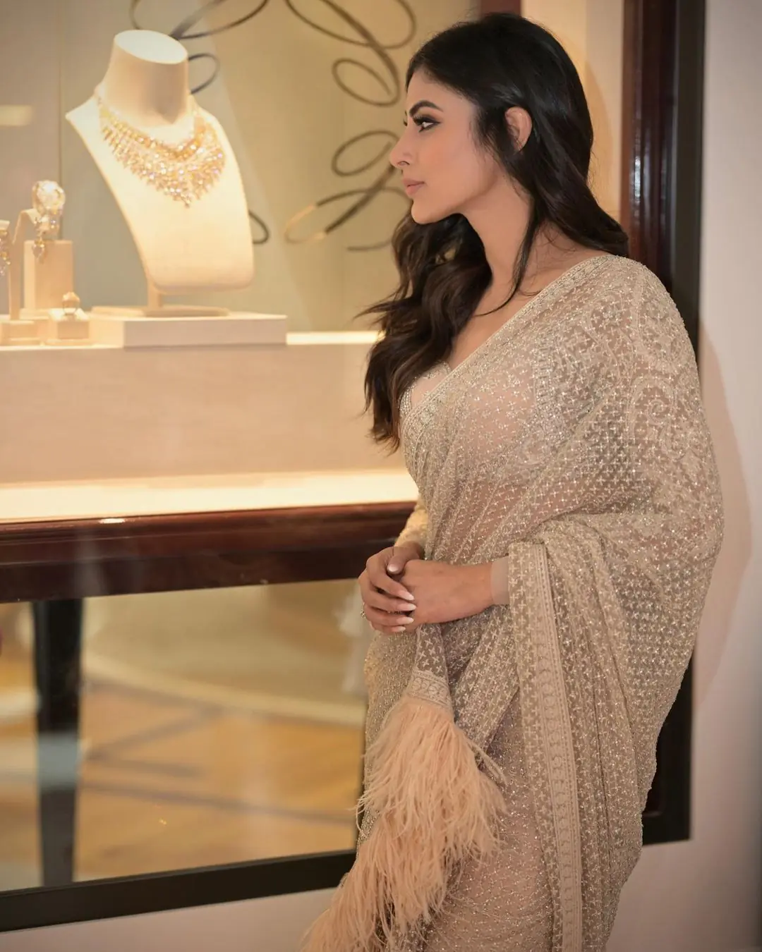 Talking about Mouni’s beautiful saree, the actress has worn a see-through saree in which she is looking very beautiful. In this photo, Mouni has taken her palla in her hand and her body behind the saree is visible!