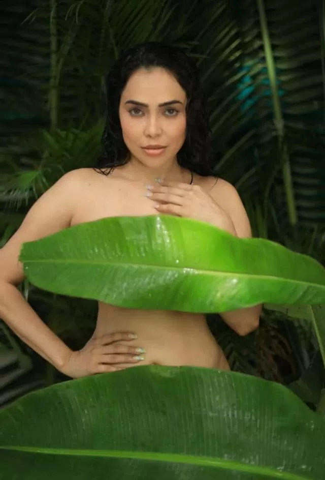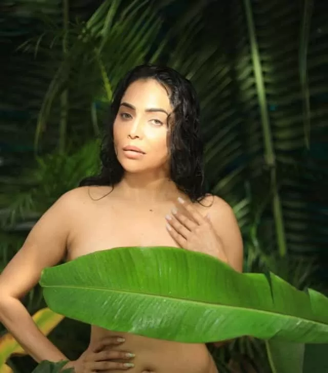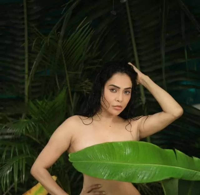 Nikita has done a photoshoot by covering her body with tree leaves.