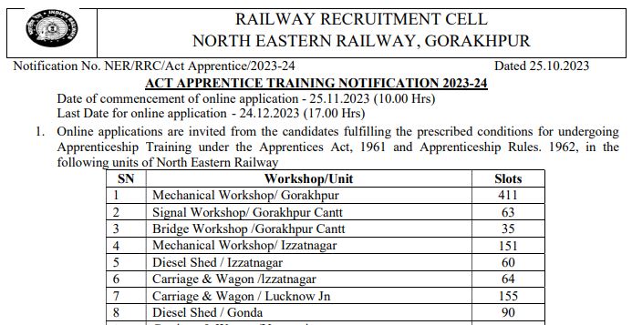 According to the official notification of North Eastern Railway, there are recruitment for candidates in 9 units.