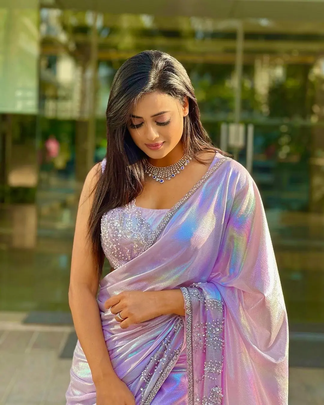 In her latest pictures, actress Shweta is wearing a readymade saree in a satin look, in which she is looking very gorgeous.