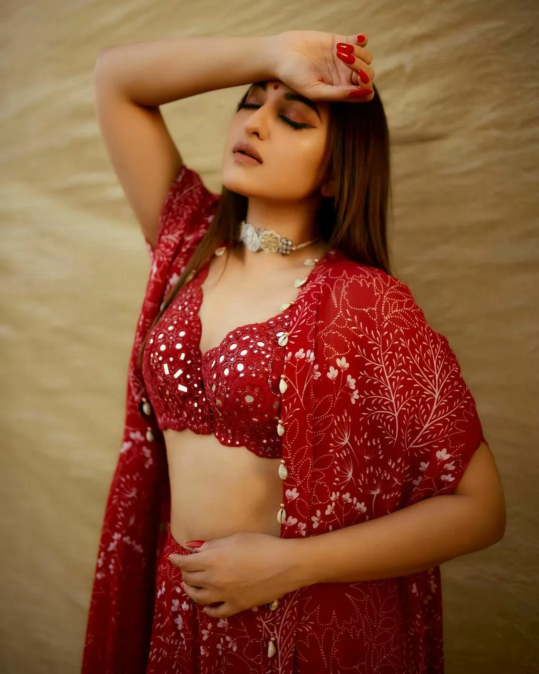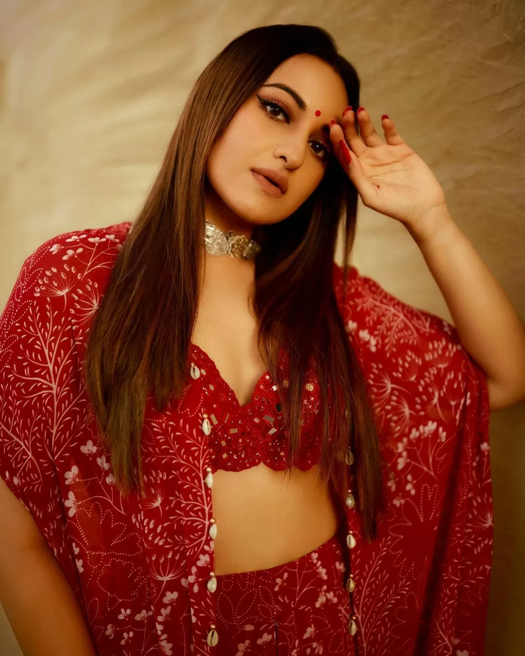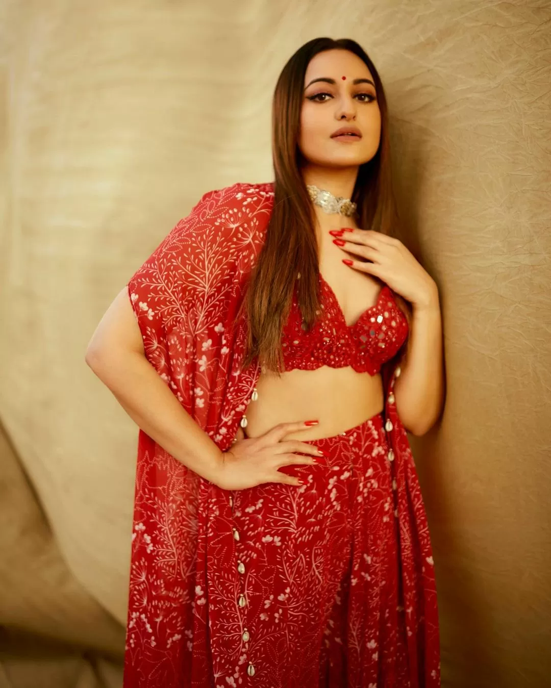 Sonakshi Sinha has recently shared some pictures in a traditional avatar on her Instagram, in which she is seen wearing a red color lehenga.