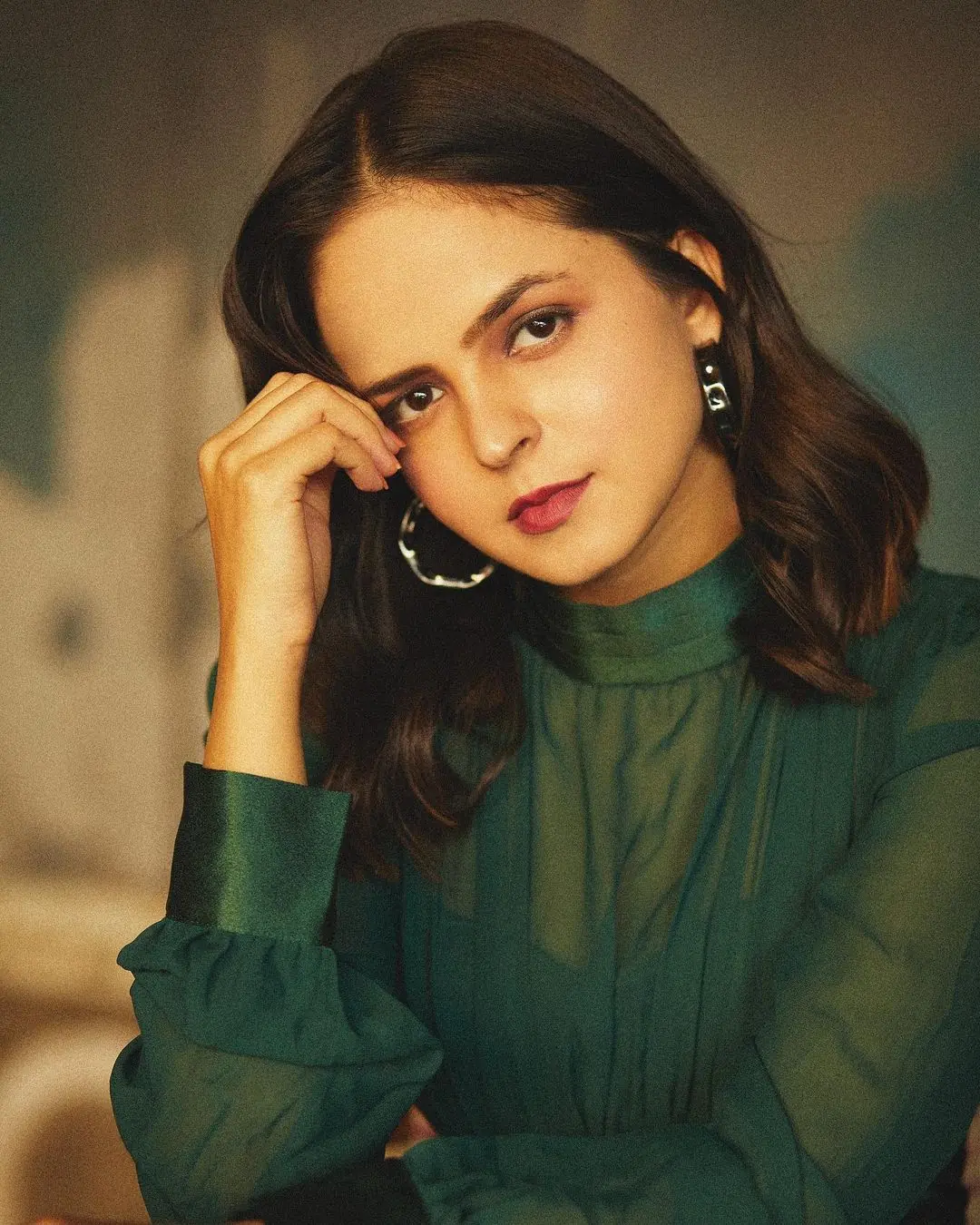 Palak is wearing a green sports dress in this photo. In which she has got a sporty look.