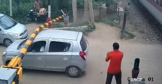 Recently a video is going viral on social media. In this video, a man sitting in a van is seen risking his life. This video is of a railway crossing. Where the gate was closed, a van crosses the railway crossing and comes inside and suddenly the train also arrives. And the van driver starts breaking the gate to allow his vehicle to pass and breaks the gate and leaves, you can see the video.